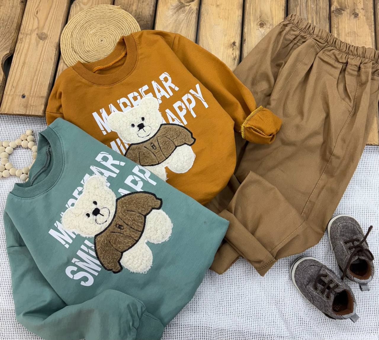 ست بلوز و شلوار بیرونی پسرانه مدل تدی برجسته با شلوار کتان کد ۷۲
