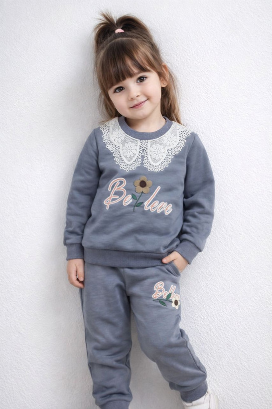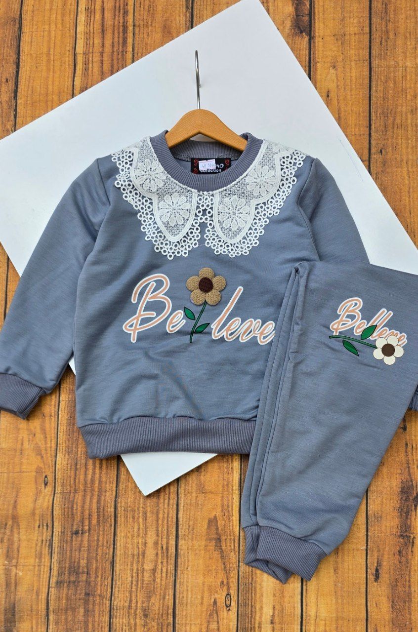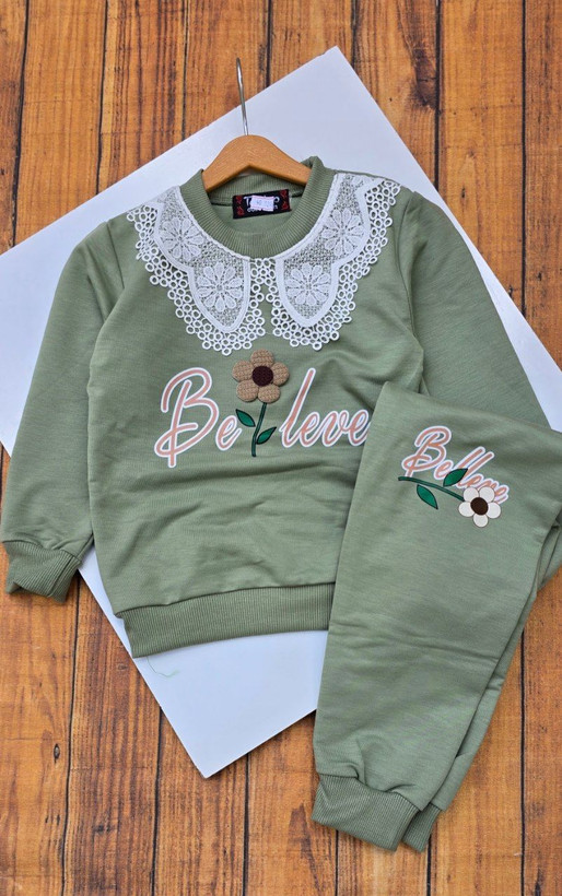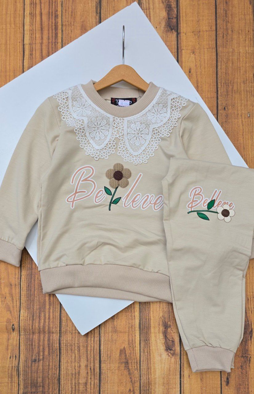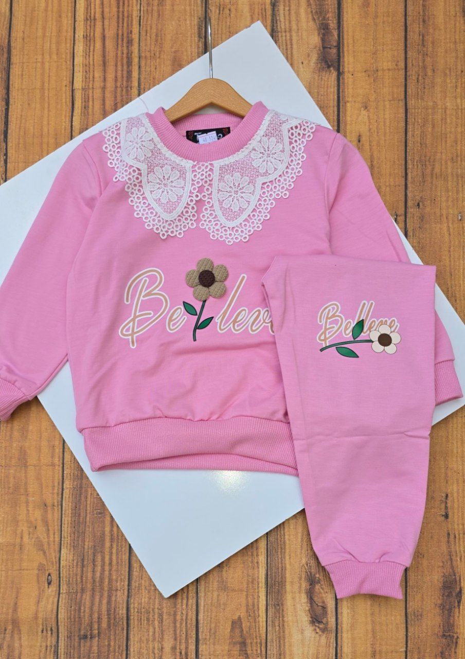 ست بلوز و شلوار یقه گیپور گل برجسته کد ۱۲۰