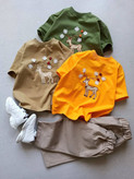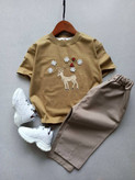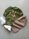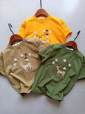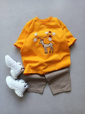 ست تیشرت و شلوارک بچگانه دخترانه با شلوارکتان بیرونی مدل گوزن و مروارید کد ۱۵۴