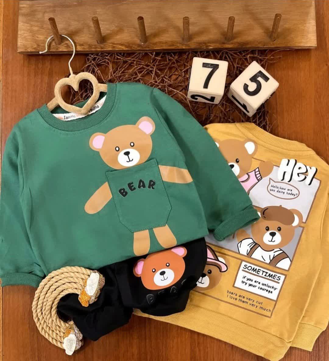ست بلوز و شلوار بچگانه مدل خرس جیبی کد ۱۵۸