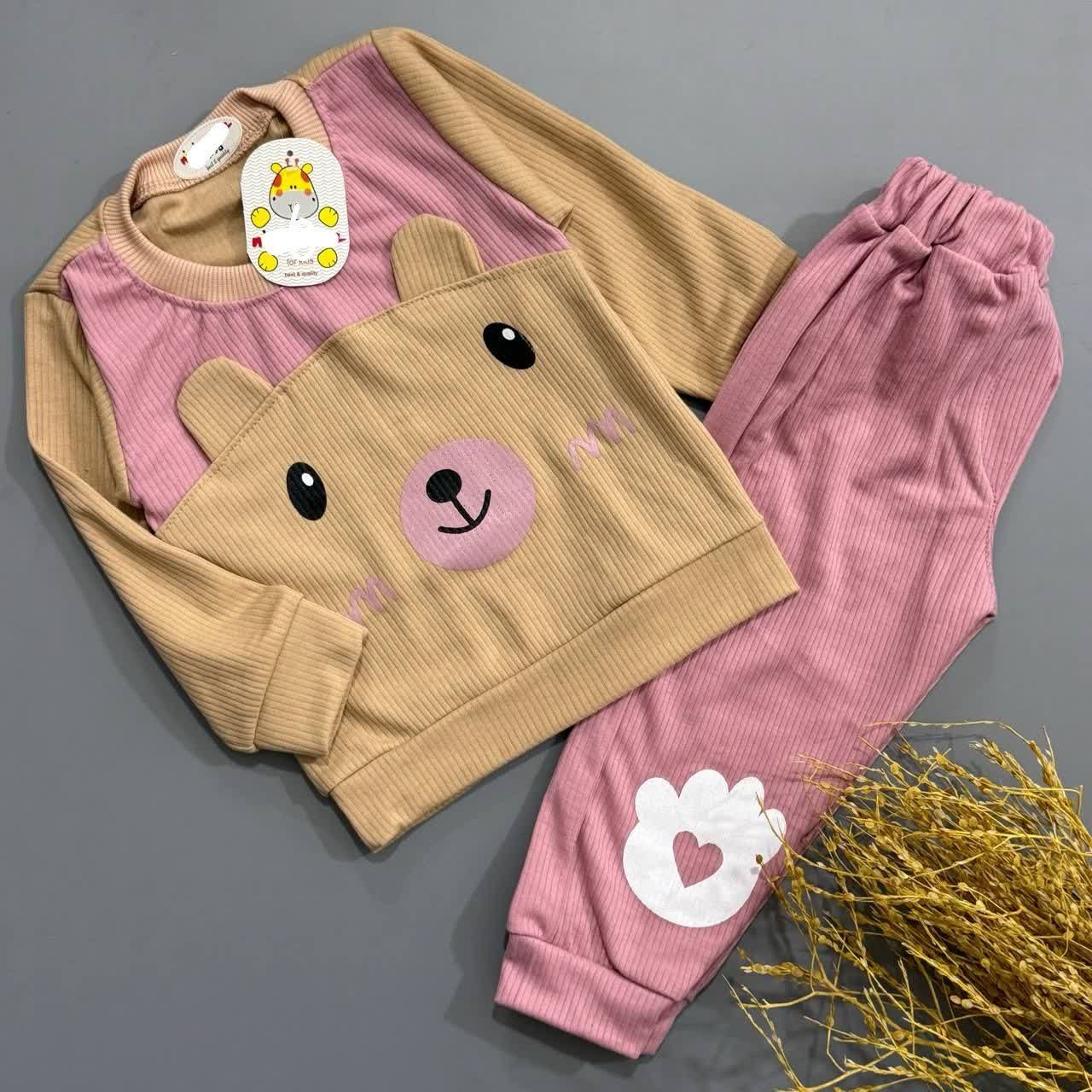 ست بلوز و شلوار پنبه ریلی،کبریتی مدل خرسی کد ۲۷