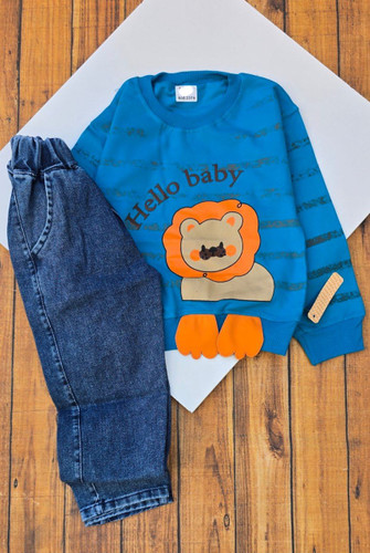 ست بلوز و شلوار جین بچگانه مدل شیر پادراز کد۱۳۷