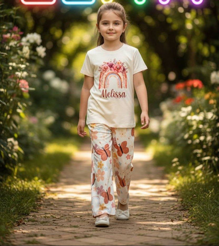 ست تیشرت و شلوارک دخترانه مدل رنگین کمان و پروانه کد ۱۵۱