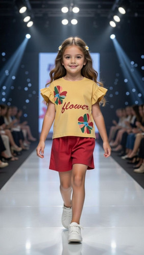 ست تیشرت و شلوارک لینن بیرونی گل برجسته دخترانه کد ۱۶۴