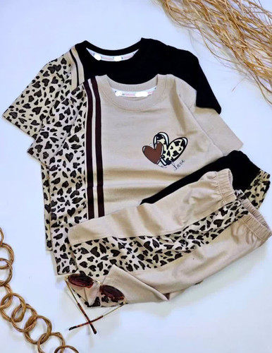 ست تیشرت و شلوارک دخترانه مدل قلبی پلنگی