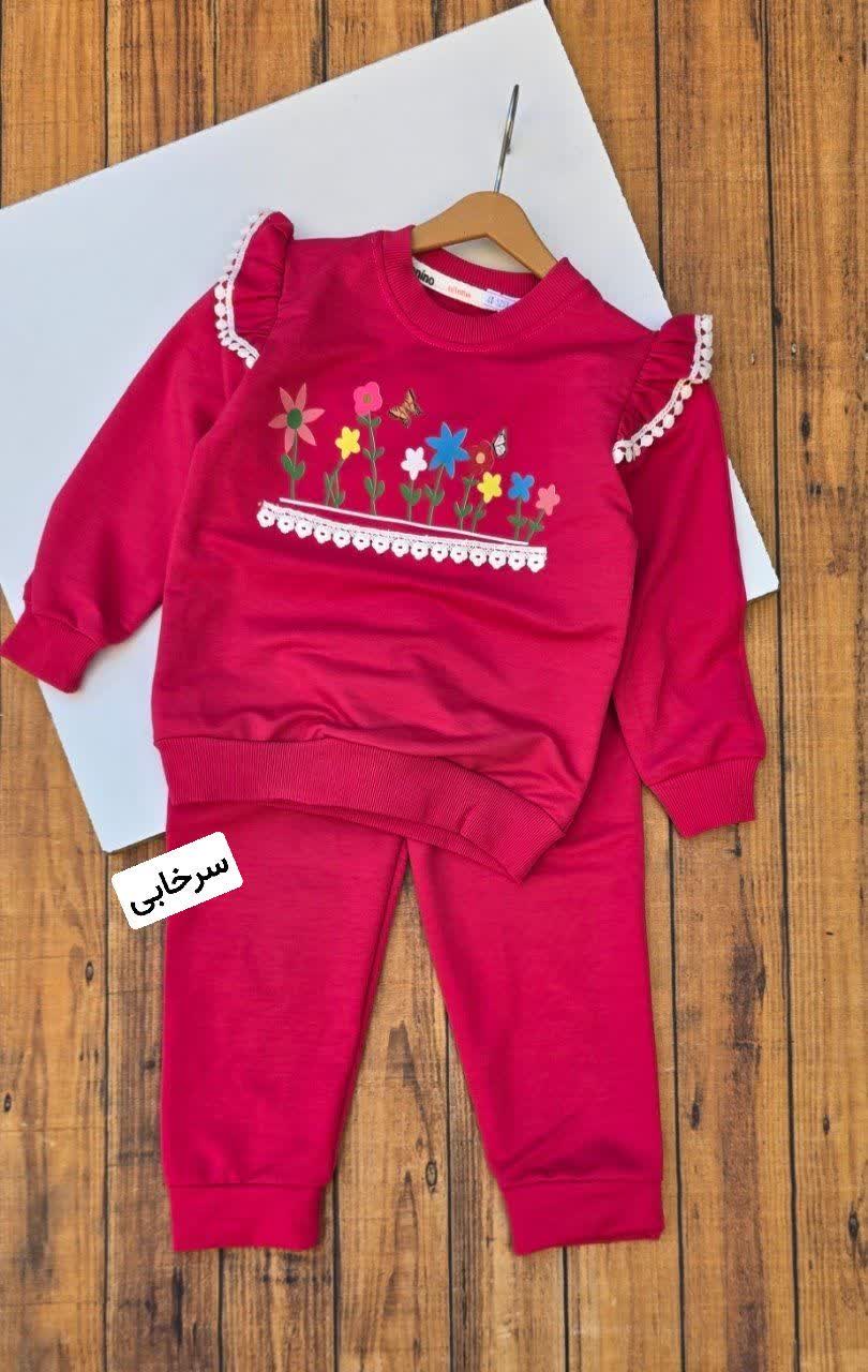 ناموجودست بلوز و شلوار دخترانه آستین گیپور مدل باغ گل کد ۱۰۷