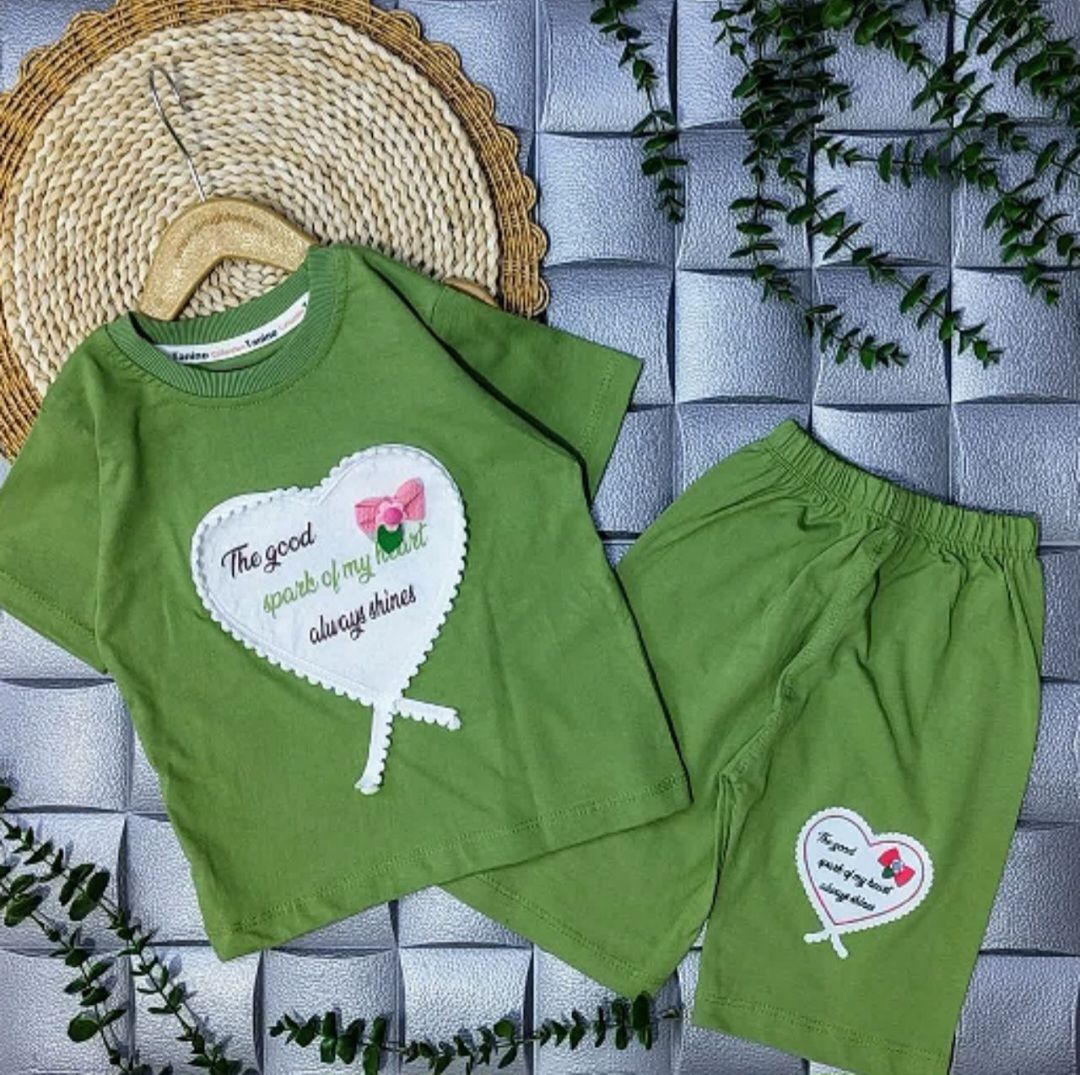 ست تیشرت و شلوارک بچگانه /دخترانه مدل قلب برجسته کد۱۵۳