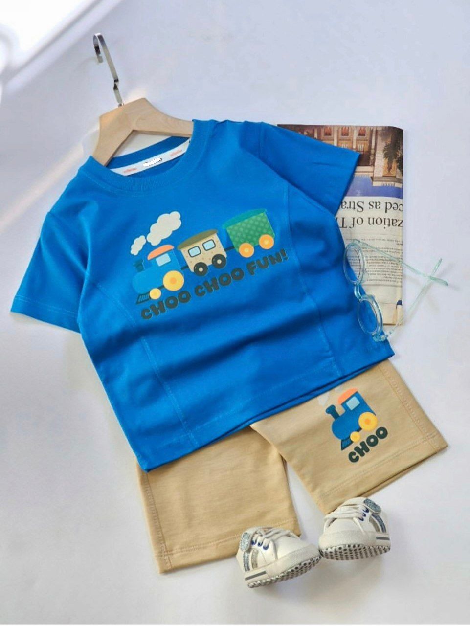 ناموجودست تیشرت و شلوارک پسرانه مدل قطار کد ۱۵۵