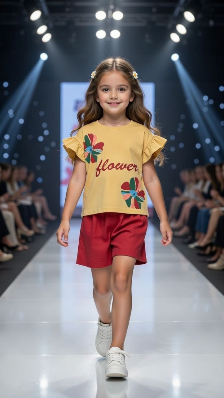 ست تیشرت و شلوارک لینن بیرونی گل برجسته دخترانه کد ۱۶۴