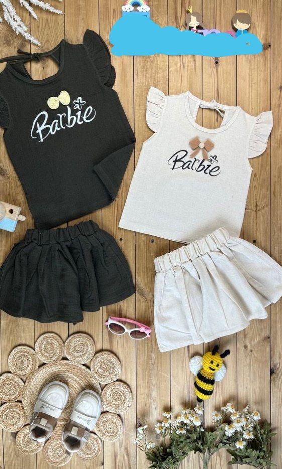 ست تاپ و شلوارک دامنی لینن دخترانه مدل پاپیون کد ۱۶۱