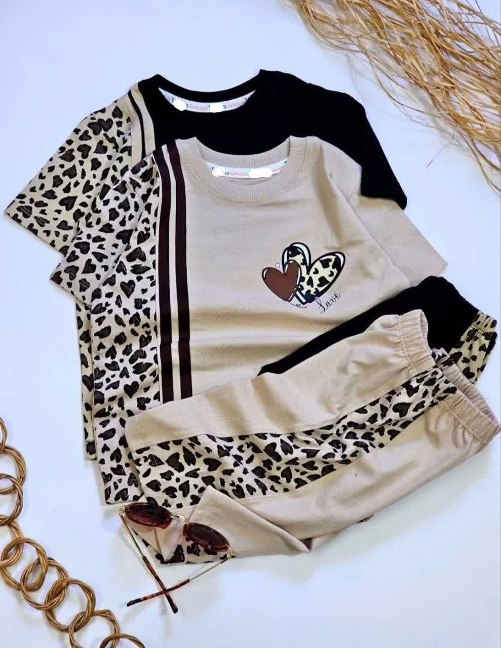 ست تیشرت و شلوارک دخترانه مدل قلبی پلنگی